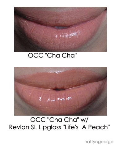 Thoughts: I personally have been wanting to try OCC Lip Tars for a very long time. I have seen raves on several websites, blogs and youtube & since then, added a couple shades to my wish list. Lip Tars currently come in 22 shades.. but I was only interested in the most wearable every day pink shade called "Hush". It really wasn't enough for me to actually place an order. That was until a few new shades came out sometime this year.. one of which was "Cha Cha".. which is described as a pinked cantaloupe. I rarely order things online.. so It wasn't till the other day that I placed an order on a website for a few cosmetic samples.. that happened to sell Lip Tars. Without Hesitation, I placed "Cha Cha" in my shopping cart. Hush was out of stock :(